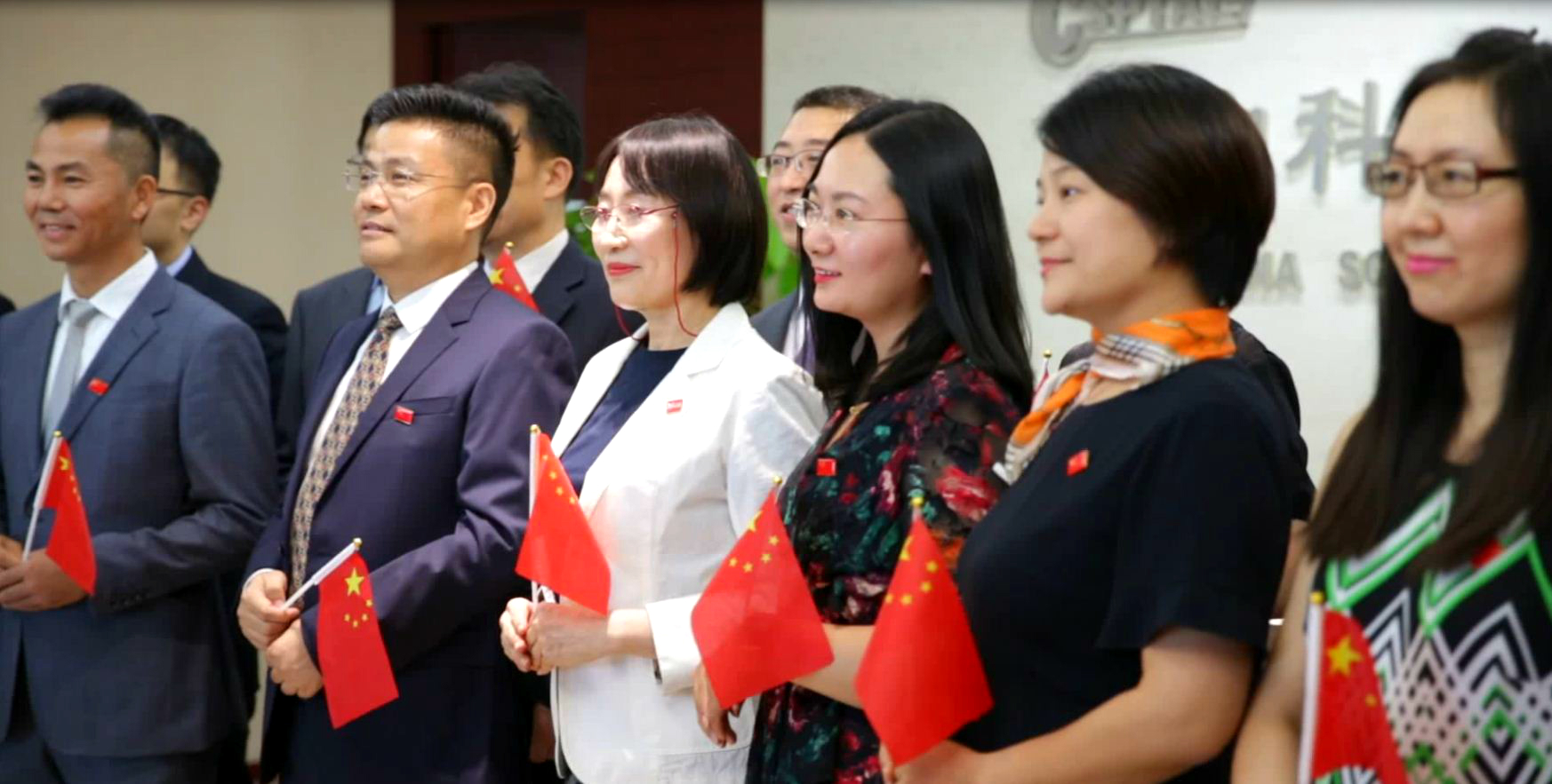 Well-dressed colleagues express their love and blessings to the motherland enthusiastically.
